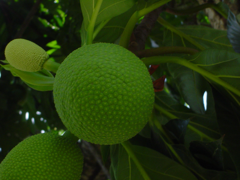 O fruto, que é o grande destaque, parece uma bola verde com casca rugosa e pesa bem chega fácil a 2 ou 3 quilos cada um. Quando madura, a polpa fica macia, branquinha ou amarelada, lembrando a textura de um pão macio, por isso o nome. A árvore começa a dar fruto depois de uns 3 a 5 anos de plantio, e quando engrena, vai que é uma beleza! Ela é perene, ou seja, dura muitos anos, e ainda resiste bem ao calor, à umidade e até a solos mais pobrezinhos. Quem planta uma dessas, ganha sombra, comida e muita história pra contar.